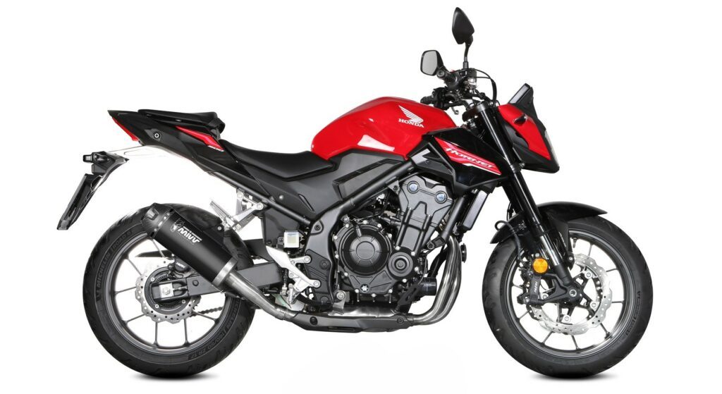 • Design: Kompakt AK-1 slip-on med skarpe linjer og et moderne, aggressivt udtryk, der matcher CB 500 Hornet’s streetfighter-design.