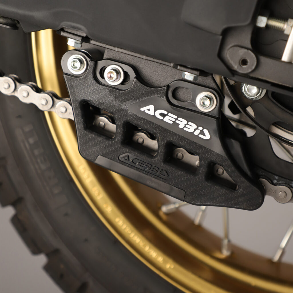 Acerbis kædebeskytter er udviklet til at beskytte kæden og sikre stabil kædeføring under krævende offroad- og adventurekørsel. Den er modeltilpasset til Yamaha Tenere 700 og hjælper med at reducere slid samt beskytte drivlinjen mod slag fra sten og andre påvirkninger i terræn.