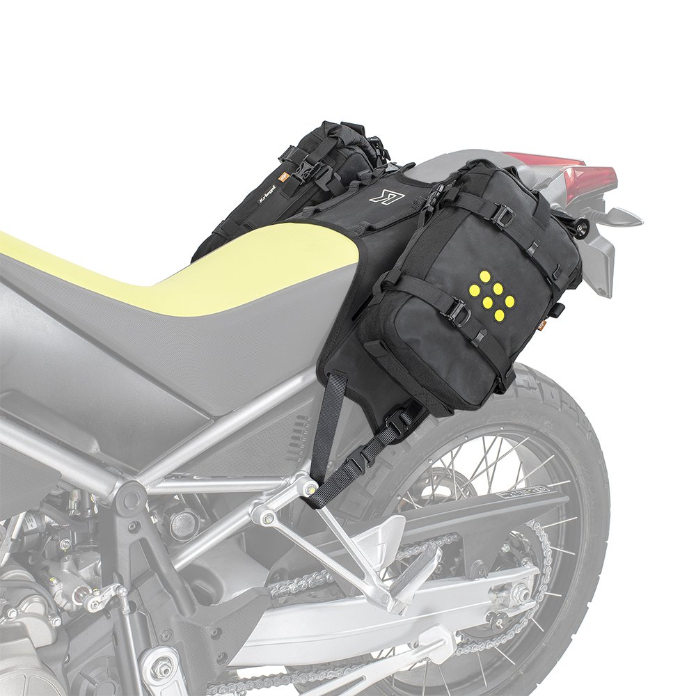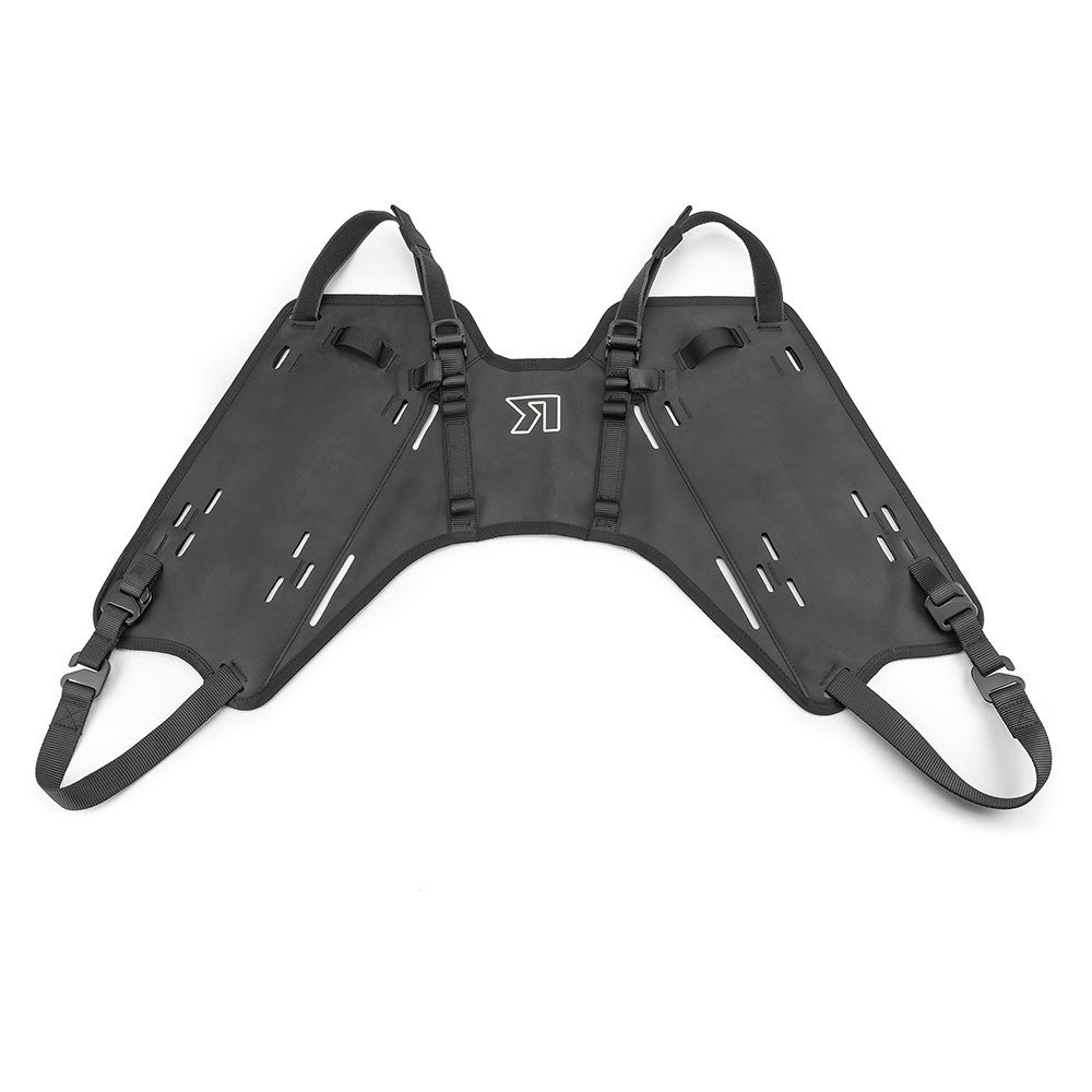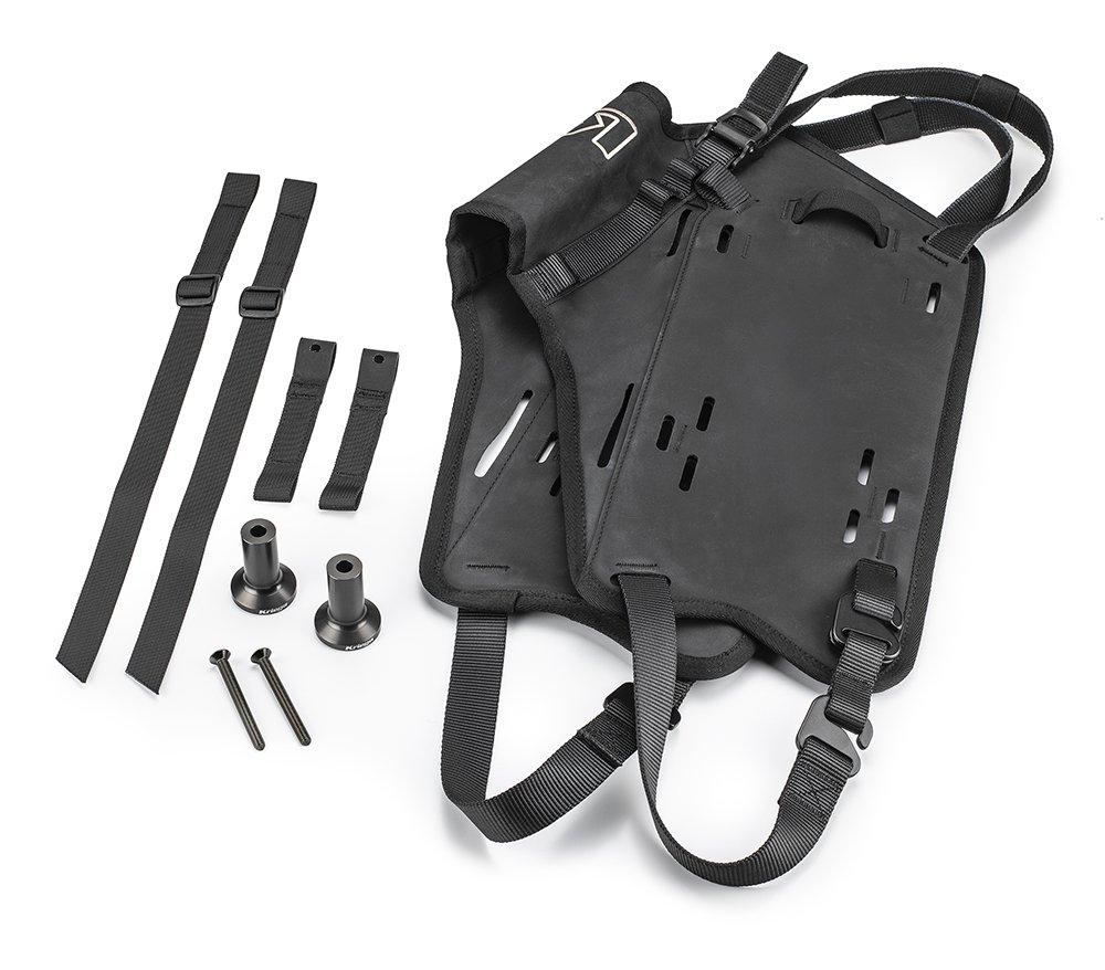 Systemet monteres som et ”over-the-seat harness” og gør det muligt at fastgøre KOS6, KOS12, KOS18 eller KOS22 Adventure Packs som bløde sidetasker – helt uden tunge metalrammer. Det modulopbyggede design giver fleksible konfigurationer fra 12 til 54 liter, afhængig af pakkekombination. Monteringen tager under et minut, og afmontering klares på få sekunder.