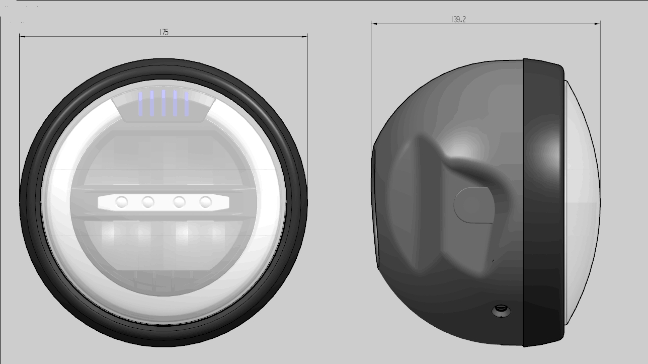 Puig sort LED forlygte i 7″ med side montering.