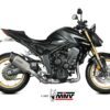 MIVV – SR-1 er en slip-on potte inspireret af superbikes og hypernakeds. Den kombinerer et aggressivt, moderne look med lav vægt og en dyb, sportslig MIVV-lyd, der opgraderer både stil og køreoplevelse. Pottehuset er udført i titanium med sort finish og har en endekappe i T-twill kulfiber. Den er præcist svejset, lasergraveret og leveres med aftagelig DB-killer. Konstruktionen er kompakt, hvilket giver enkel montering i standardplacering.