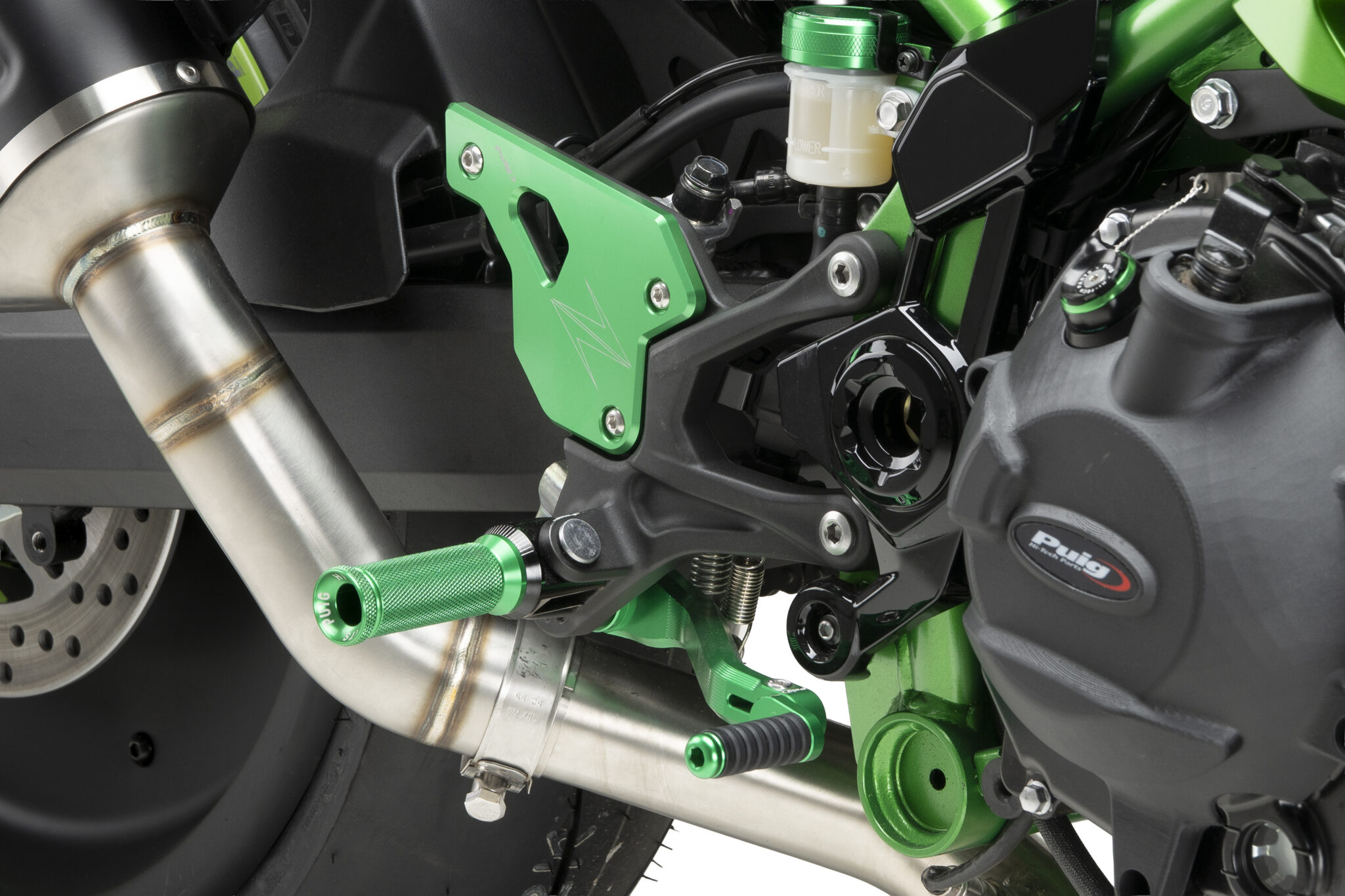 Fodhvilerne er CNC-bearbejdet i aluminium, hvilket sikrer lav vægt, høj styrke og lang holdbarhed. Overfladen er udformet med fokus på greb og stabilitet ved acceleration, opbremsning og svingkørsel. Konstruktionen giver tæt kontakt mellem fører og motorcykel uden at gå på kompromis med komfort eller kontrol.