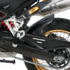 Bagskærmen er fremstillet i slidstærkt kunststof og formgivet til at integrere naturligt med motorcyklens bagsektion. Den modeltilpassede udformning sikrer korrekt pasform og monteres på eksisterende fastgørelsespunkter uden behov for modificering.