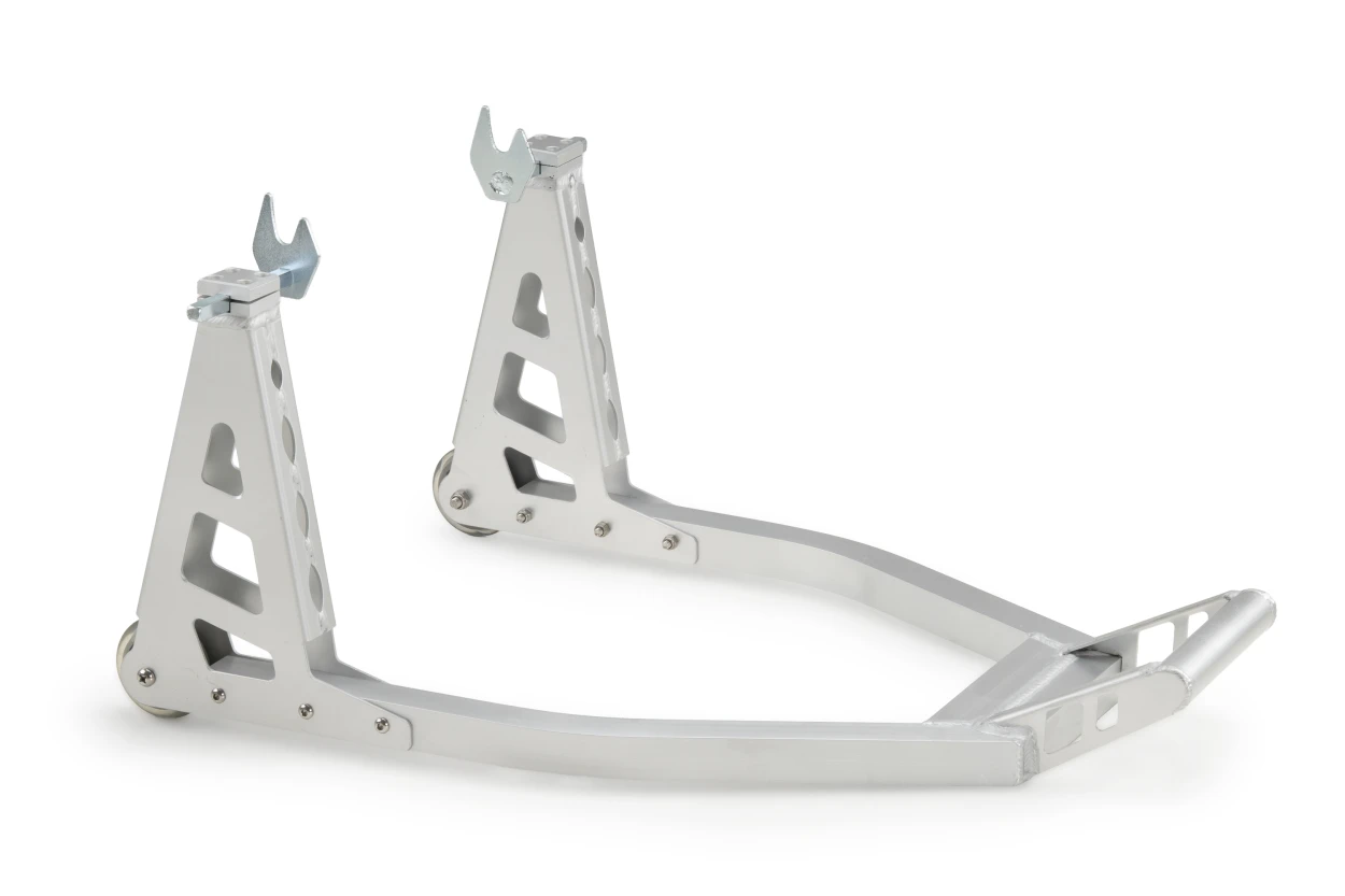 Den præcise konstruktion er designet til motorcykler med konventionel (dobbeltsidet) svingarm. Den sikrer stabilt og sikkert løft ved opgaver som kædepleje, hjulservice og rengøring. Aluminiumsrammen giver desuden et moderne, professionelt udtryk og lang holdbarhed.