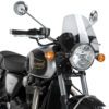 Puig New Generation Sport giver din Triumph Bonneville et mere markant, klassisk-sportsligt udtryk samtidig med, at den forbedrer komforten under kørsel. Den kompakte rudes udformning er designet til at reducere vindtryk mod overkroppen og skabe en mere behagelig kørestilling – perfekt til både bykørsel og længere ture.