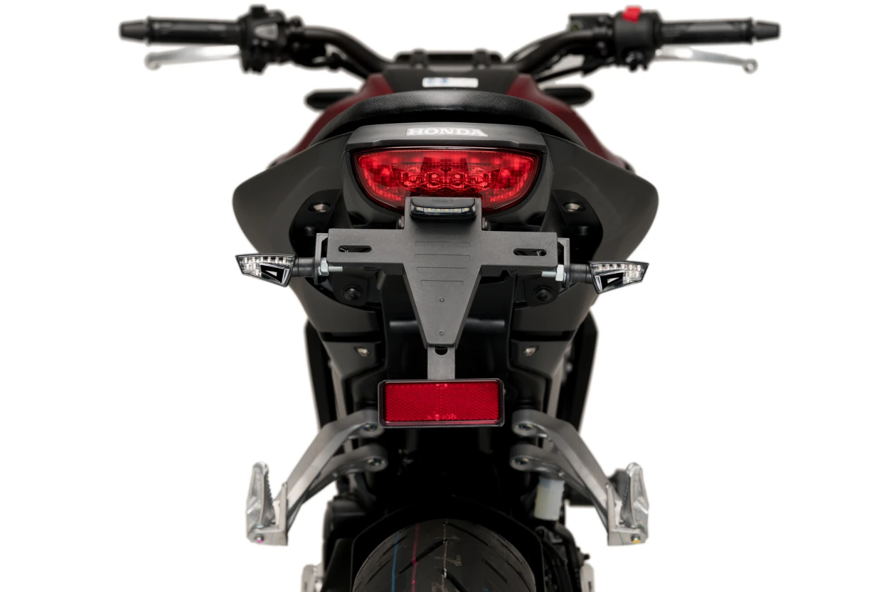 Puig nummerpladeholder giver et mere kompakt og velintegreret bagparti ved at erstatte den originale nummerpladeløsning. Den hævede og strømlinede udformning bidrager til et mere teknisk og afdæmpet udtryk uden at gå på kompromis med funktionalitet.