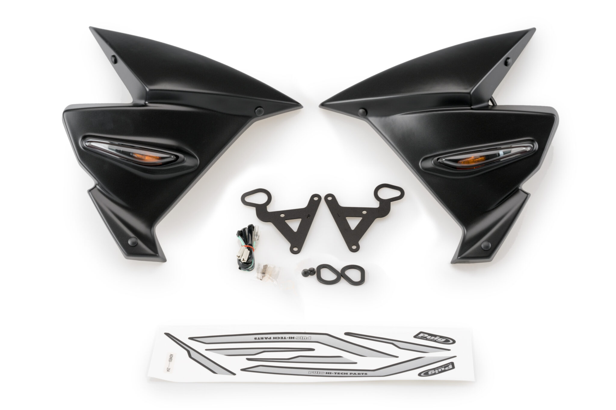 Puig sideskjold beskytter radiatoren mod stenslag, snavs og skader, samtidig med at de tilføjer et mere komplet og teknisk udseende til motorcyklen. De er designet til at passe perfekt til modellen og integreres diskret med den originale styling.
