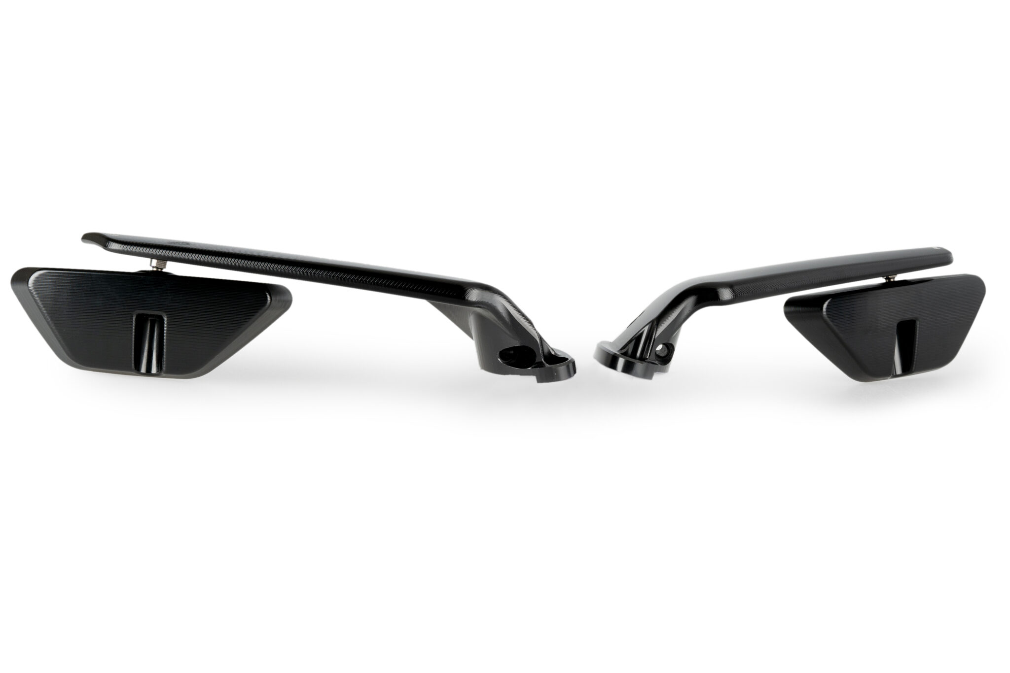 Spejlene er fremstillet i CNC-fræset aluminium med anodiseret overflade, som sikrer høj præcision, lav vægt og effektiv korrosionsbeskyttelse. De leveres som et komplet sæt med alt nødvendigt monteringsudstyr.