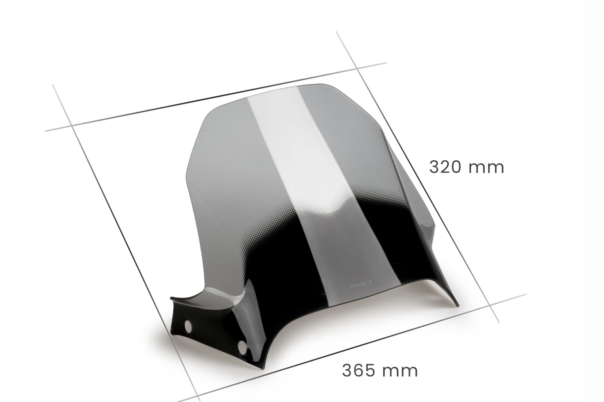 Skærmen er fremstillet i 4 mm modstandsdygtig akrylplast med afrundede kanter for øget sikkerhed. Den er specifikt udviklet til modellen og monteres på de originale fastgørelsespunkter med medfølgende monteringsdele.
