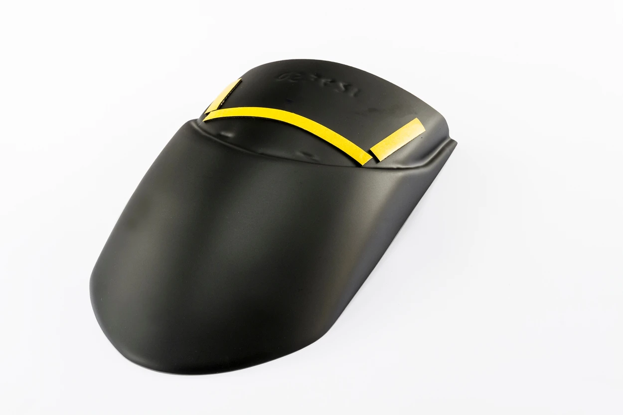 Til monteringen medfølger selvklæbende tape til fastgørelse. Nitter leveres som ekstra sikring for en mere permanent montering på den originale forskærm.