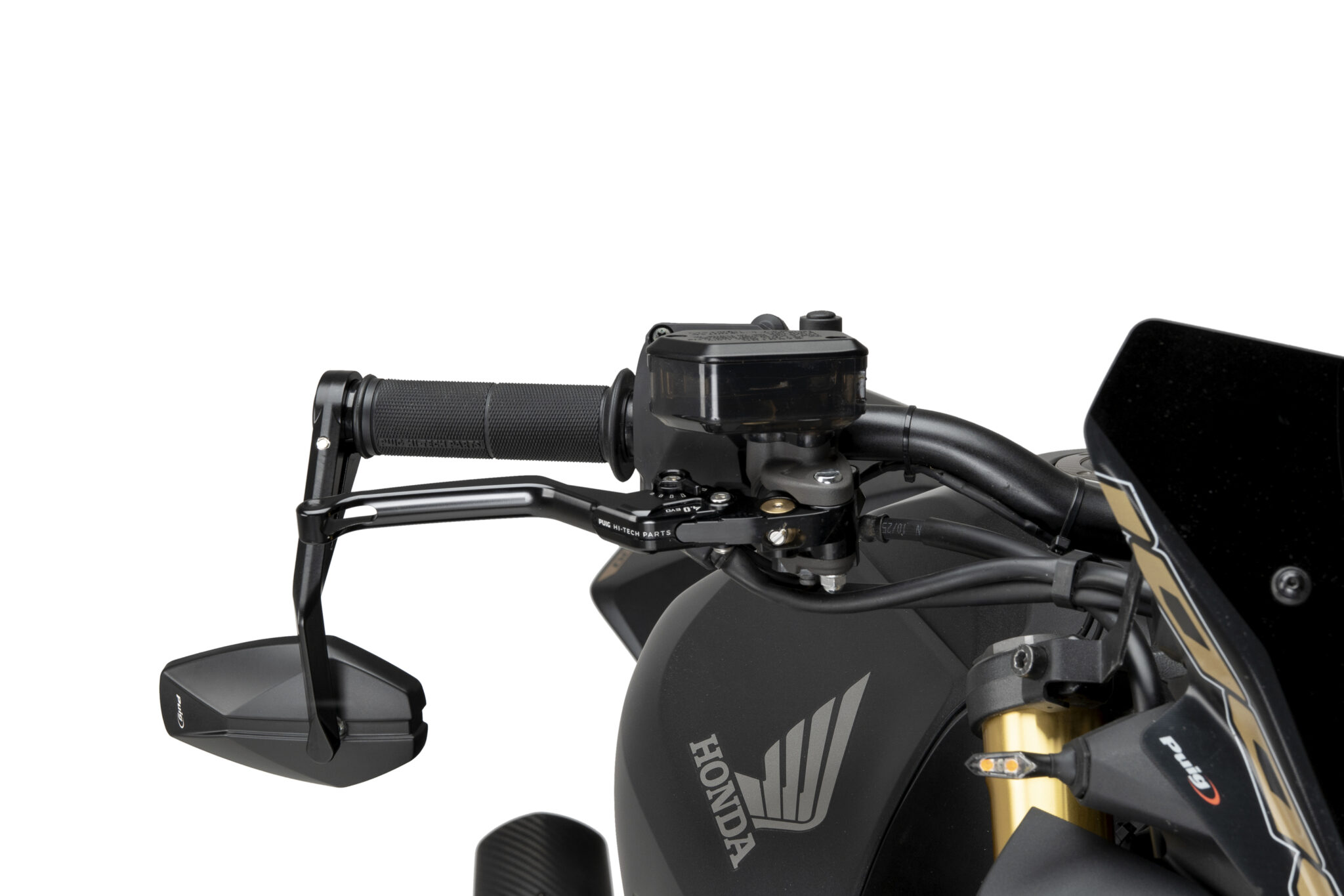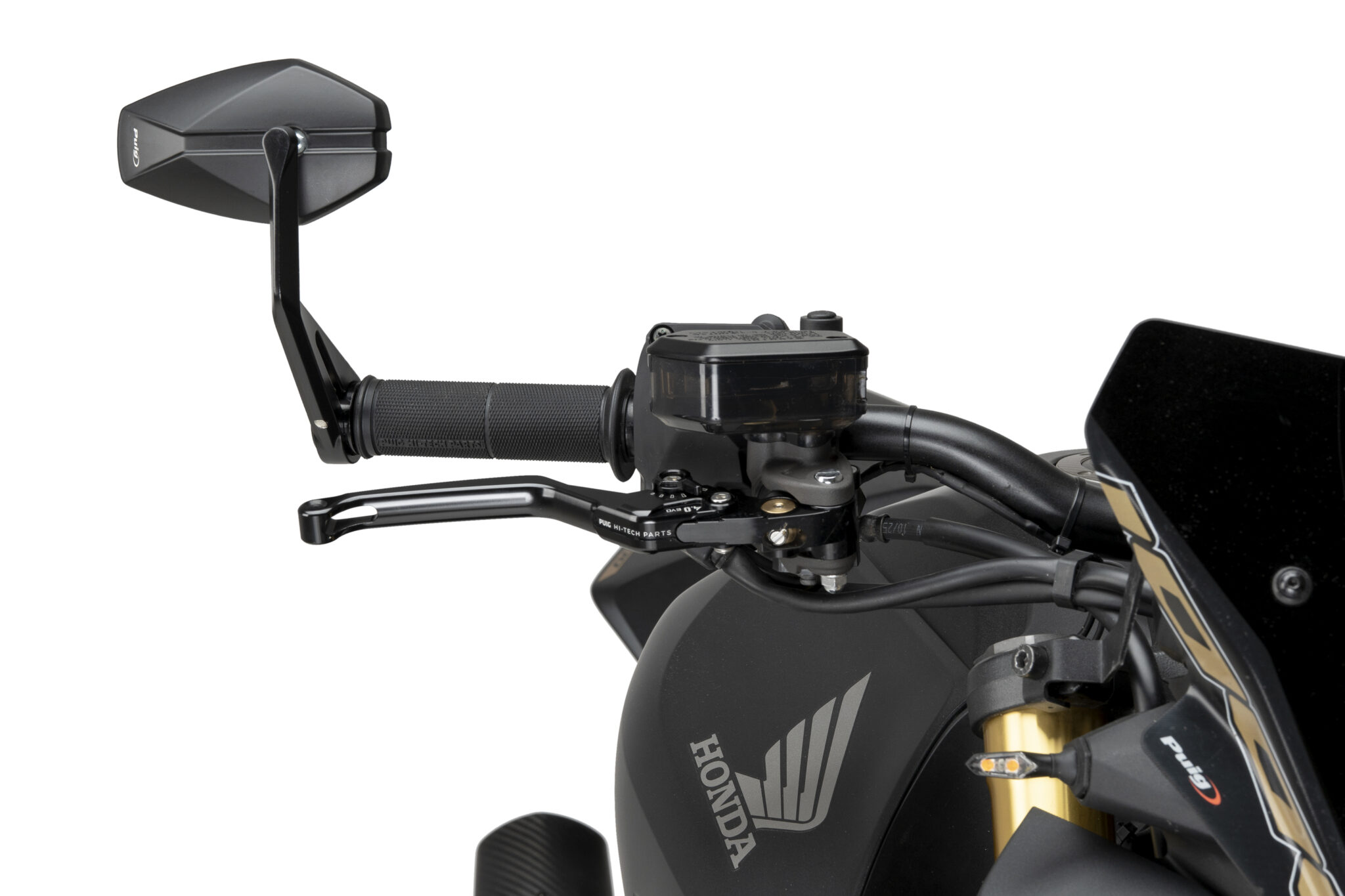 Puig MP25 styrende spejle giver motorcyklen et kompakt og stilrent og moderne design. Den enkle form bidrager til et diskret udtryk, samtidig med at spejlet sikrer klart udsyn bagud under kørsel.