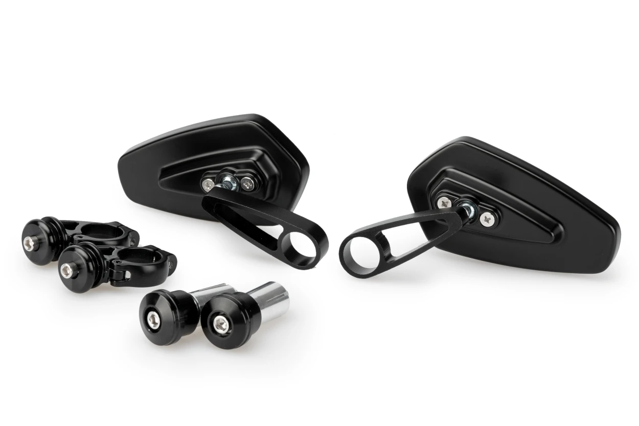 Spejlet leveres med en adapter og ekspander, der passer til styr med en indvendig diameter på 13-18 mm, hvilket gør det kompatibelt med en bred vifte af motorcykelmodeller. Den kompakte spejlflade sikrer et klart udsyn bagud uden at kompromittere motorcyklens slanke profil.