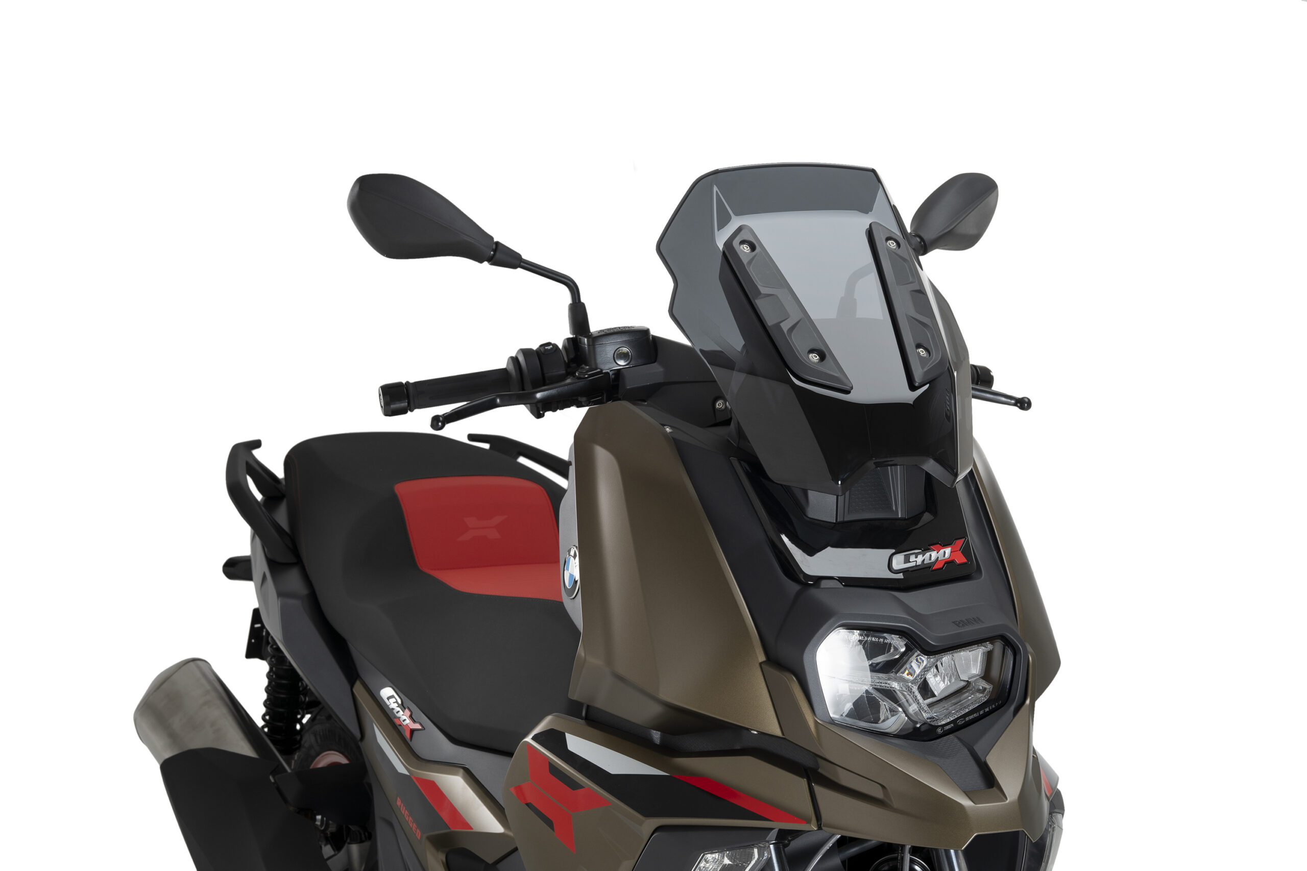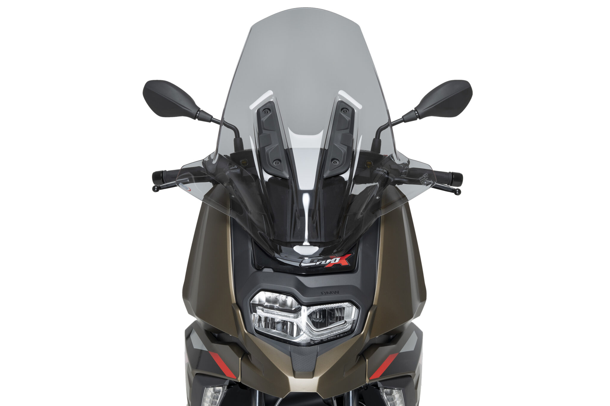 Vindskærmen er fremstillet i slagfast termoplastisk polymer med høj optisk klarhed og en robust konstruktion, der sikrer stabilitet ved højere hastigheder. Den aerodynamiske V-Tech-profil er udviklet med fokus på komfort og funktion og integreres naturligt med køretøjets front. Monteringen sker på de originale fastgørelsespunkter.