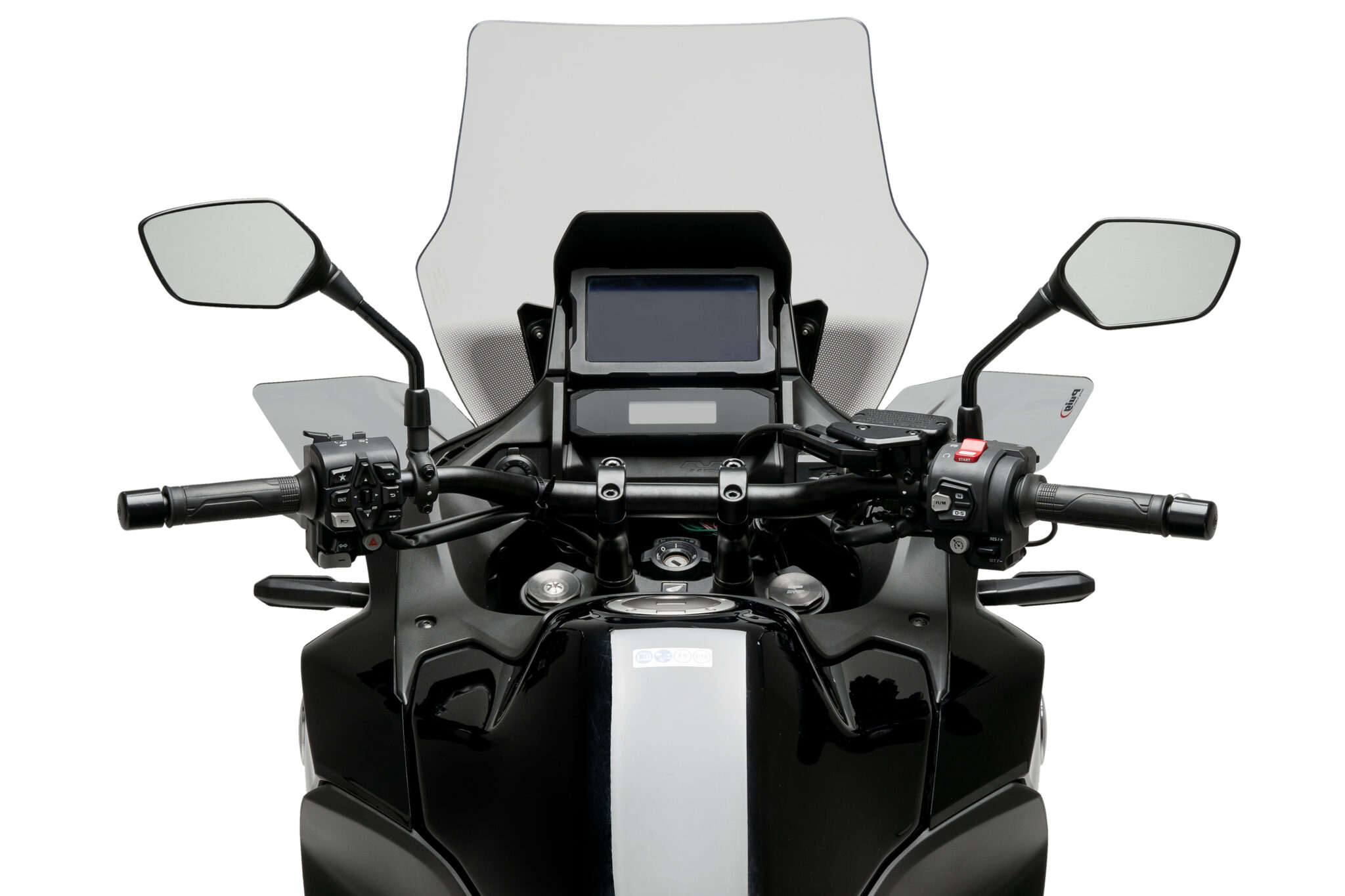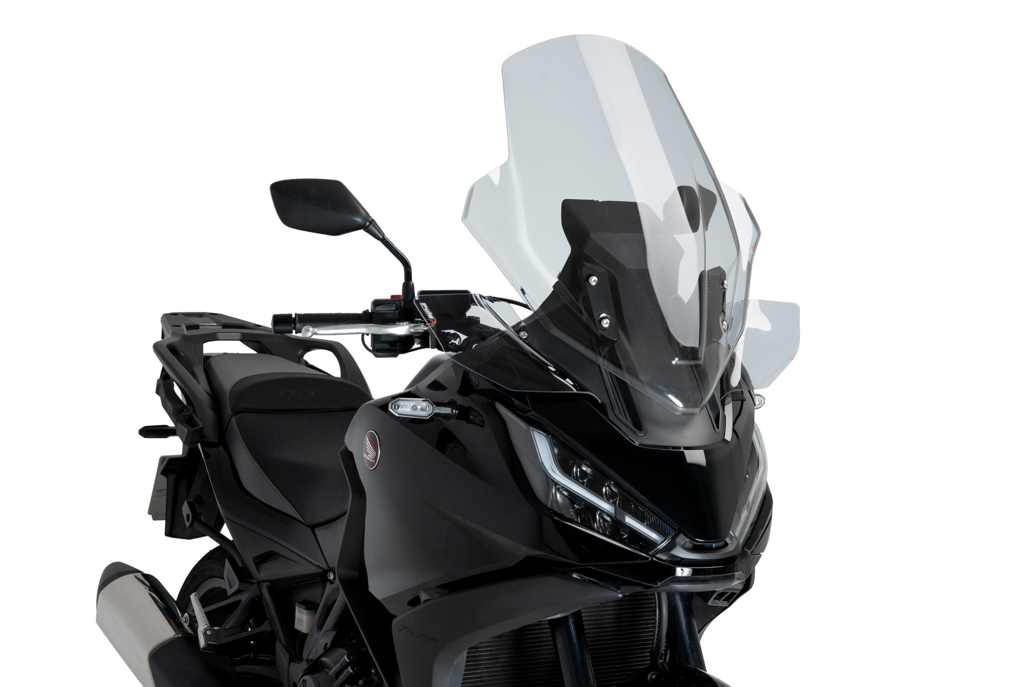 Kompakte i størrelse integrerer deres enkle og minimalistiske linjer perfekt med designet af Honda NT. De fås i klar, let røg og mørkt røg farve, så du kan matche farven mellem vindskærmen og skærmene.