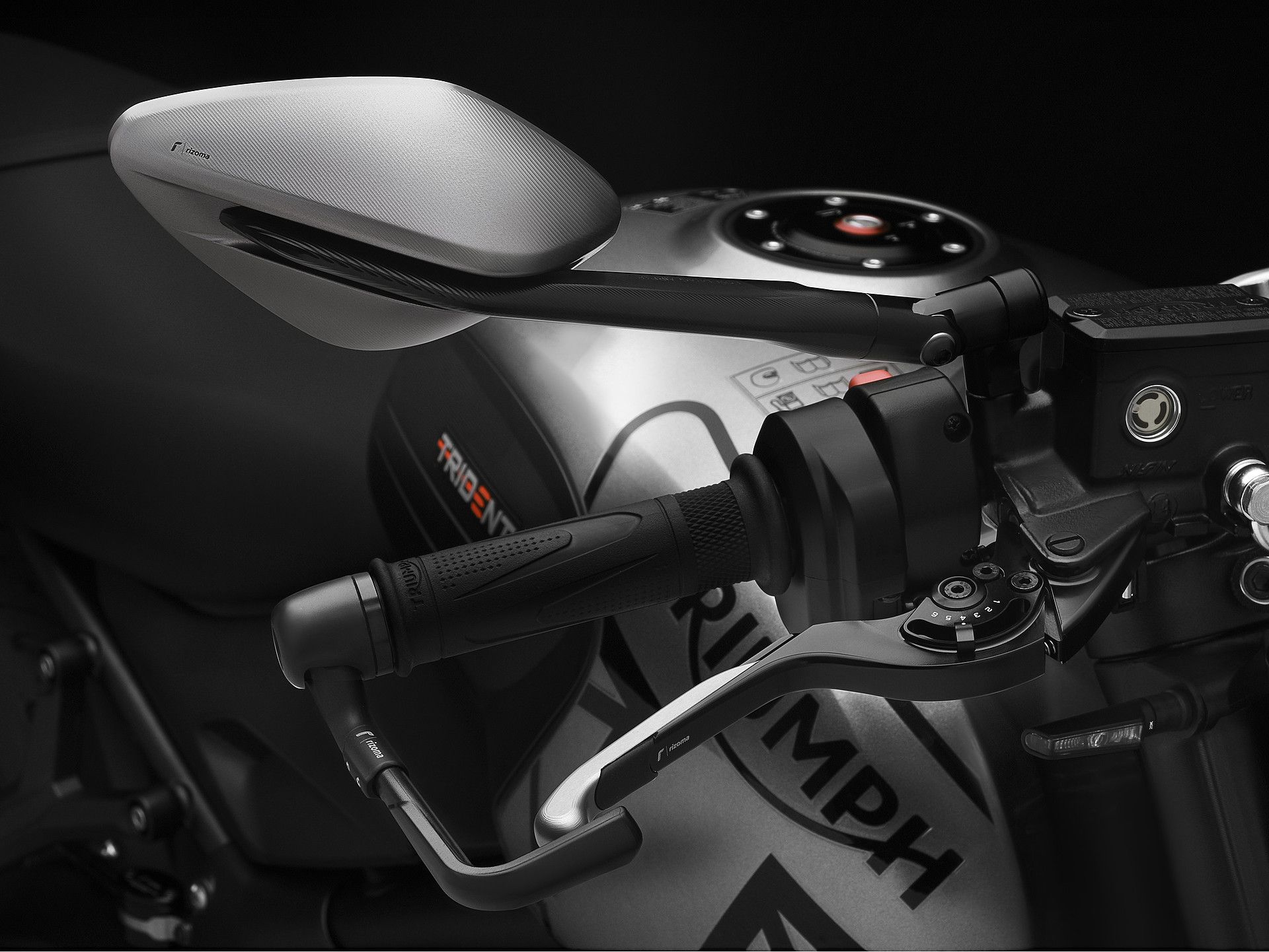 Triumph Trident 660 med et udvalg af Rizoma udstyr.