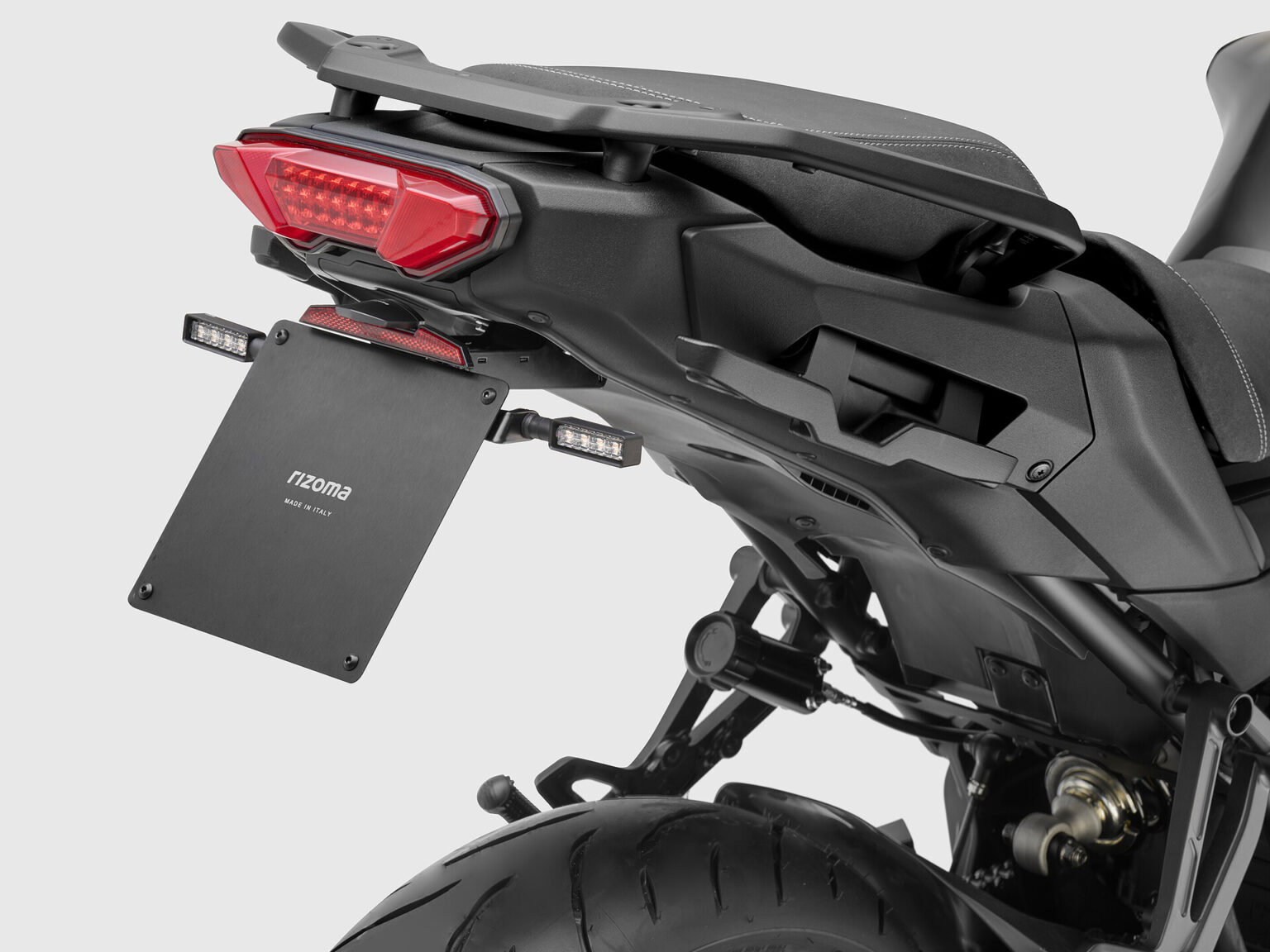 Fra Rizoma og Puig finder du blandt andet højkvalitets komponenter i CNC-fræset aluminium såsom håndtag, spejle, fodhvilere, nummerpladeholdere, samtlige beslag og meget mere. Udover det finder du også aerodynamiske vindskærme og winglets, hårdføre bag- /forskærme og bundkåber, samt kraftige blinklys og ekstralygter. – Designet er med fokus på både funktionalitet og italiensk elegance eller spansk finesse.